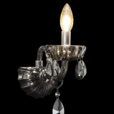 ARANDELA SMOKE Marca: Duquadro Material: Cristal Cor: Grafite Tamanho: 31cmx13cmx27cm (ComprimentoxLarguraxAltura) Soquete para lâmpada E14 NÃO ACOMPANHA LÂMPADA