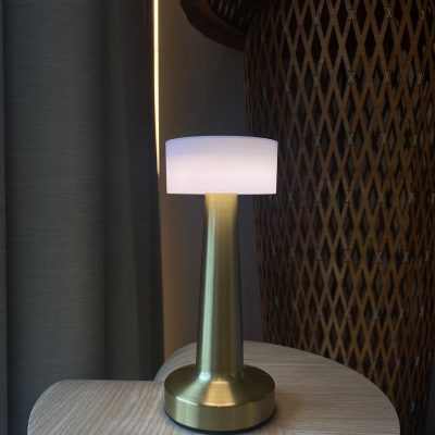 Abajur de Mesa – Cinderella Ref: 41998 Material: Alumínio Cor: Dourado Medidas: (A)22cm Potência: 3w Temperatura de cor: 3500k/4500k/6500k