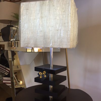 Abajur Torre de Madeira com Cúpula de Linho