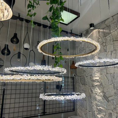 Lustre moderno, elegante e completo, possui led integrado em seus anéis, criando harmonia e sofisticação para os seus ambientes.