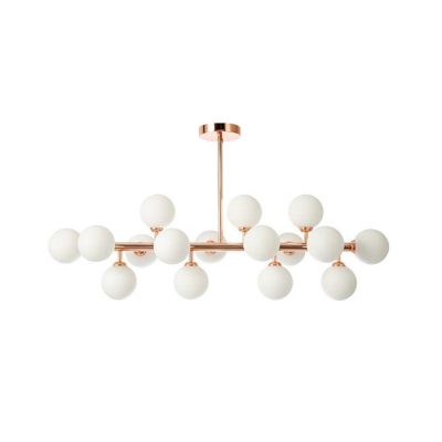 Marca: Skylight Ref: SKY-3027-1 Pendente Cotton Material: Metal Cobre Rose e Vidro Branco Leitoso Medida: 95cm X A:58cm Cabo: 150cm 16 Soquetes para lâmpada G9 Não acompanha lâmpada Tensão: 110/220V Peso: 3kg 01 Ano de garantia