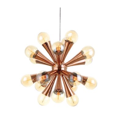 Pendente Stelar Material: Alumínio Cor: Cobre brilho Medida: Ø460mm x Altura: 380mm 12 Soquetes para lâmpada E27 Não acompanha lâmpada Tensão: 110/220V Peso: 3kg