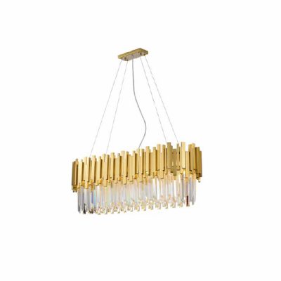 Lustre Fancy Elegante e Cristalino Formato Retangular Skylight Iluminação REF: 3013-1 Medidas: 90cm X 35cm X 30cm Material: Metal e Cristal Cor: Dourado e Transparente Lâmpadas: 9x G9 Não acompanha lâmpada Tensão: 110/220V 01 ano de garantia