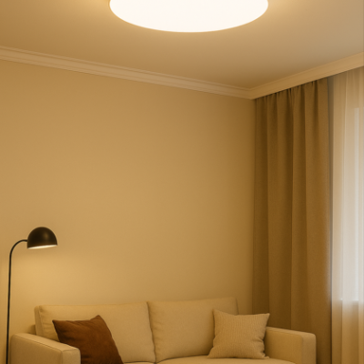 Plafon redondo de embutir, seu design imita uma sanca de gesso, proporcionando uma iluminação indireta e confortável para os seus ambientes.