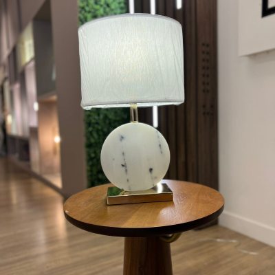 Marca: Bella Iluminação Ref: 41554 Material: Metal e Mármore Cor: Dourado e Mármore Branco Medidas: (D)22cm (L)12cm (A)37cm Soquete para lâmpada E27 NÃO ACOMPANHA LÂMPADA