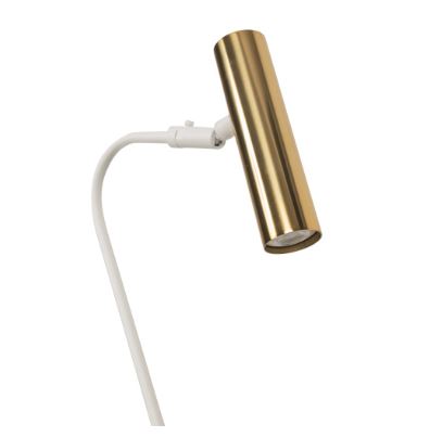 Abajur aramado na cor dourado com cúpula de tecido branco, moderno e elegante na mesma medida para criar harmonia e beleza para os seus ambientes.