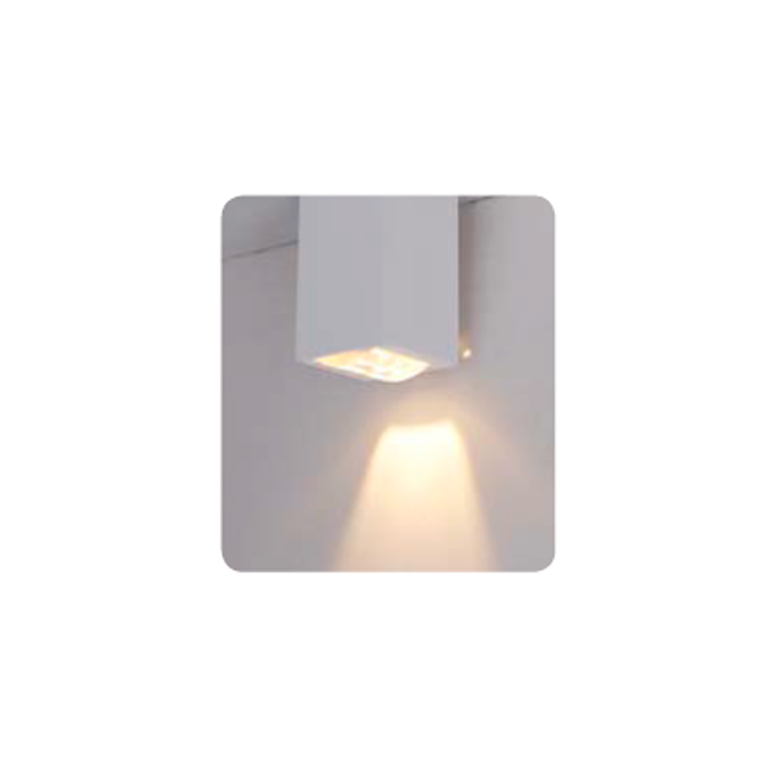 Arandela de termoplástico, com design simples e minimalista, mas funcional ao mesmo tempo, entregando uma iluminação condicente para área interna e externa.
