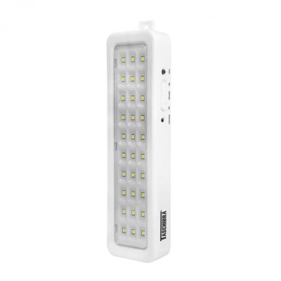 Marca: Taschibra Luminária de emergência Pratic Medidas: 20cm X 5.5cm X 2.8cm Material: Plástico Potência: 2W Fluxo Luminoso: 100lm | 50lm Ângulo de abertura: 120º Tensão: 110/220V Bateria com autonomia para até 6h. Garantia de 03 meses