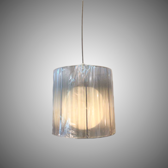 Lindo pendente de tecidos na cor prata, sua cúpula é montada fio por fio, tornando seu design mais estiloso e moderno para os seus ambientes.