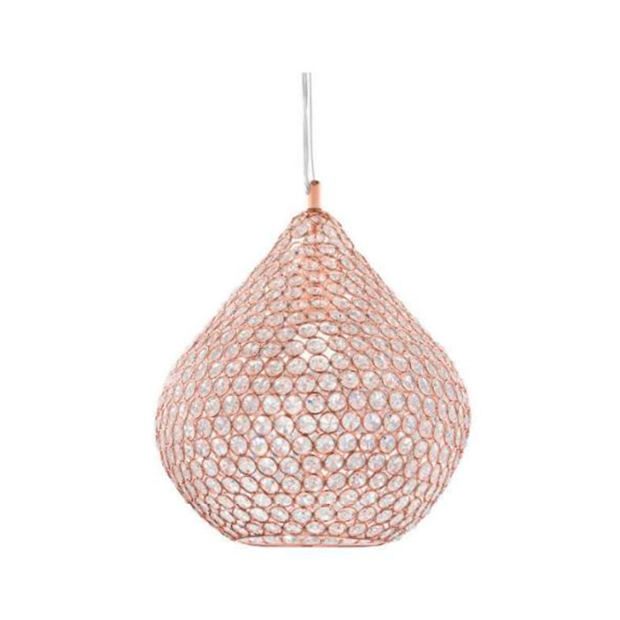 Pendente de metal cobre com cristais elegante e requinte em sua forma, ideal para quem quer destacar um ambiente.