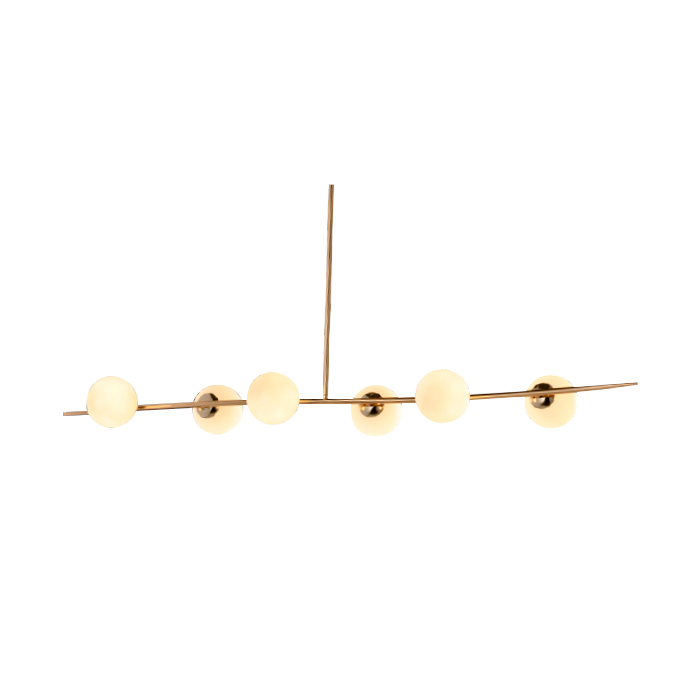 Pendente Louise Longo Dourado Com 06 Globos de Vidro Branco
