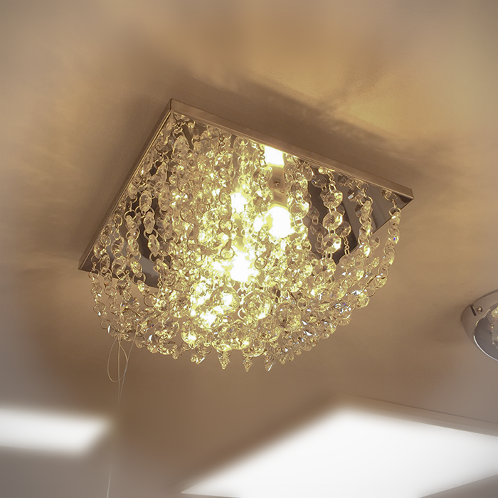 Plafon de Cristal, simples, versátil e elegante para a sua sala, tornando o ambiente mais sofisticado e moderno.
