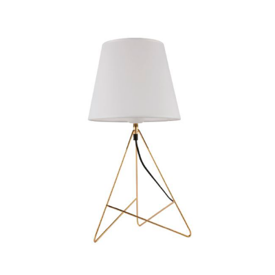 Abajur aramado na cor dourado com cúpula de tecido branco, moderno e elegante na mesma medida para criar harmonia e beleza para os seus ambientes.