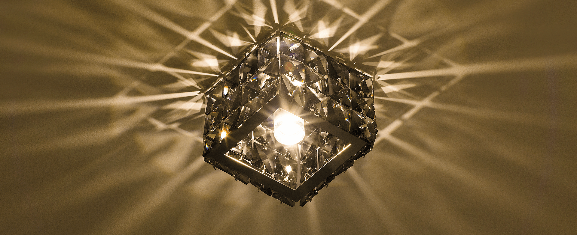 Spot semi-embutido de cristal, uma forma elegante e requinte de trabalhar a iluminação indireta do seus ambientes.