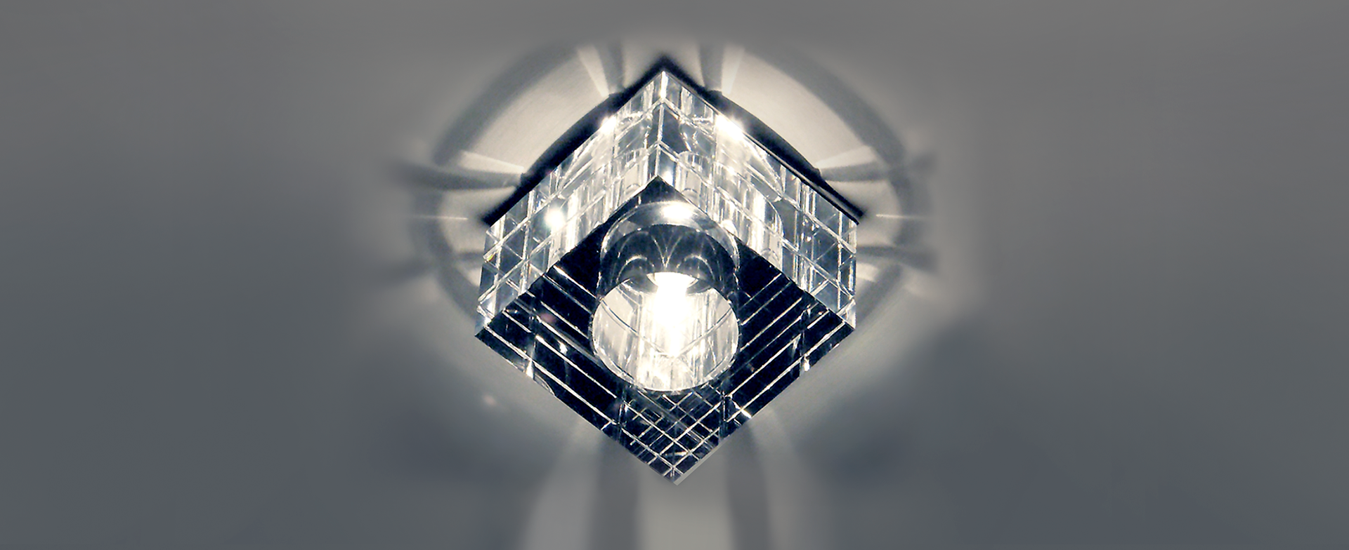 Spot semi embutido de cristal, uma forma elegante e requinte de trabalhar a iluminação indireta do seus ambientes.